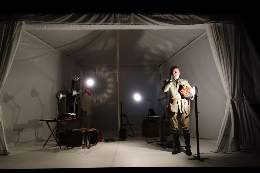 Comme dans sa précédente création « Appelle moi Olympe », Jean Claude Falet fait théâtre d’une uchronie en mettant en scène ce huit clos pour trois comédiens.
