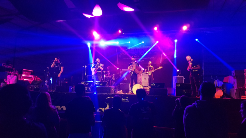 Tout d’abord une mise en ambiance avec le groupe folklorique estrémègne « Las Nogaleas », association dont le but est de faire découvrir le folklore de cette région partageant ses frontières avec le Portugal. S’ensuit le groupe galicien Böj (« Lutte » en Europe de l’Est). Une musique traditionnelle à la fois galicienne, asturienne, irlandaise, écossaise et bretonne. Le groupe composé d’artistes de diverses nationalités a régalé le public au rythme de ses multiples instruments. Gagnant du concours de « Runas de Bandas novelles 2017 », le groupe a pu se produire au Festival International du Monde Celte 2017 l’été dernier à Ortigueira en Corogne. Festival de la musique folk de référence mondiale.