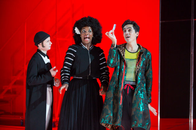Pourtant, quel triomphe que cette diction académique parfaite ! Karine Pédurand, surtout, en Clarice, fait oublier avec une maîtrise impeccable cette esthétique surannée du e muet. Elle éclabousse de fraîcheur une scénographie ultra-dense et compense une direction dont ils semblent tous, sur scène, chercher encore à se convaincre. Ils gesticulent, tout le temps, à grands renforts de bras moulinant et de mains tournoyantes. Lisa Pajon est un Cliton obscène et truculent à la puissance comique d’une dell’Arte… Joris Avodo relève le défi de contemporanéité : il a déniché pour son Philiste l’élégance du street, filée d’une intelligence scénique jubilatoire. Aurore Déon est une Lucrèce grâcieuse, intense, et fi de l’accoutrement, c’est la dignité qui éclate, son port de tête soutenant seul un regard de feu. Jacques Pieiller et Nathalie Kousnetzoff en Géronte et Isabelle ont quelque chose d’un autre théâtre, l’un en fraise et jogging roulant des r furieux, elle qui s’abandonne sur une vague techno -il y a du désespoir et de l’envie.