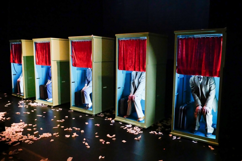 La genèse : Des cabines. Cinq cabines de photomaton. Ou peut-être sont ce des cabines d’essayage, voire téléphoniques ? Cabines multifonctions pour illustrer les histoires que nous narrent les cinq excellents comédiens dans Moutoufs. Cinq Belges avec en commun un père marocain. Ou le contraire, cinq Marocains avec en commun une mère belge. Sauf qu’ici, Jasmine Douieb, Myriem Akhedou, Hakim Louk’Man, Othmane Moumen et Monica Doueib (de leur vrais noms dans le spectacle) se sentent plus Belges que Marocains. « Une mise à nu » nous disent-ils. Aucune invention, juste la réalité. « Histoires vraies à la fois vécues et fantasmées ».