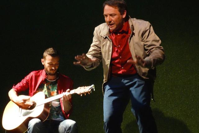 François Godart se révèle être un fascinant raconteur d’histoires, entrainé par son acolyte qui lui donne le tempo. Car il est aussi question de rythme dans cette pièce, celui de la guitare de Benjamin Delvalle qui habille littéralement le récit et celui de ce juste dosage trouvé entre narration, silence, anecdote, musique, humour, émotion… Une pure rythmique poétique.