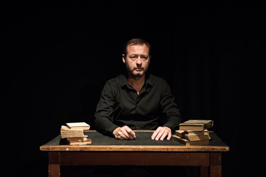 D’une chaise et d’une table, uniques éléments de décor, la toute petite scène soutient tête haute les batailles intérieures de Péguy alors qu’en coulisses se prépare la bataille de la première guerre mondiale.