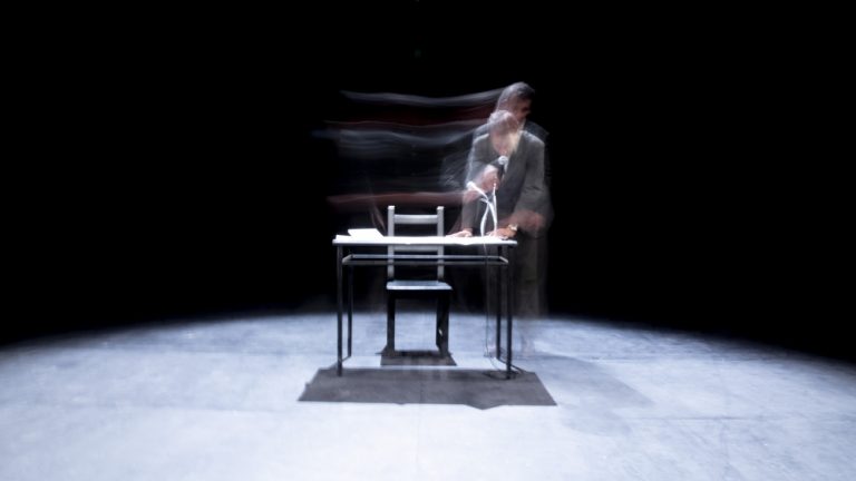 Seul sur scène, sans son violoncelle, derrière une petite table recouverte de feuillets griffonnés, c’est la partie secrète de lui, cette part d’ombres qui va tonitruer dans une expérience physique à la limite de la science et de la psychanalyse qu’il nous « dé-livre ». Aspiré dans le trou noir que son langage articulé à son inconscient crée, nous sommes conduits à un endroit où le vertige nous prend pour qu’un autre sens jaillisse de l’autre scène qu’il convoque. Comme si le travail psychique à l’œuvre chez lui, mettait en marche le nôtre. C’est que « les trous noirs sont trous-blancs [troublants] », avance-t-il, jetant le trouble en nous. Tout est langage disait Françoise Dolto, sa langue chevillée au corps en est l’incarnation.