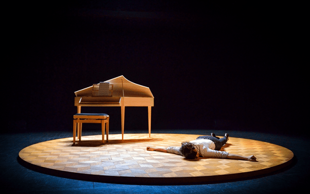 Sur le plateau où un cercle de bois accueille un monumental piano-cercueil, l’actrice s’essaie à jouer avec la distance brechtienne qui sied aux mises en scène contemporaines… sans pour autant y parvenir lorsqu’elle se met à trembler du bas du visage pour marquer avec ostentation l’émotion qui la traverse en évoquant le suicide du fils. Plus que « réellement » distante, malgré le passage du je à elle, elle joue la distanciation en s’y perdant parfois. De plus, à deux ou trois reprises, la voix off du fils dialoguant avec elle se fera entendre, créant ainsi une solution de continuité, une rupture dans le processus de distanciation. Enfin – et ce n’est pas là non plus le fait de la comédienne mais le parti-pris de l’écriture du texte – les très nombreuses adresses faites au public (– Vous y allez, vous, à la messe ? – De vos enfants, vous êtes fiers ? – Et vous, vous avez des amis ? – Et vous, vous auriez accepté de prendre un café avec elle ?) visant à briser le quatrième mur brechtien pour abolir l’illusion théâtrale en créant la proximité avec les spectateurs, font figure de procédés défraîchis dont la scolaire répétition est aussi agaçante que cousue de fil blanc.