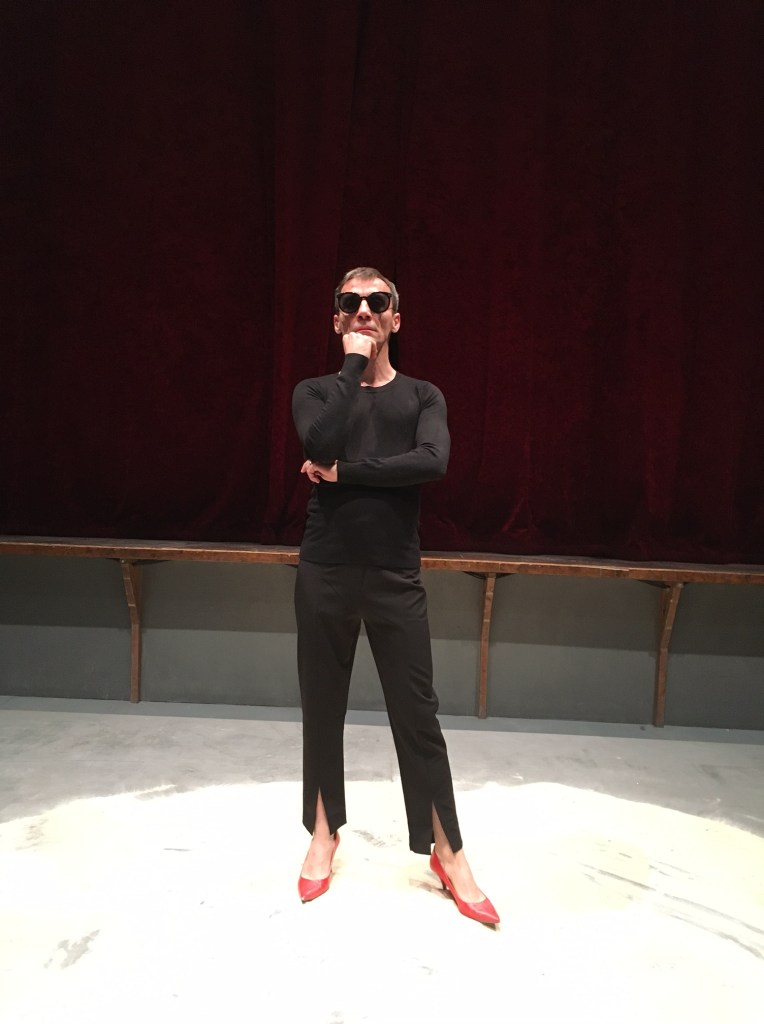 Propos : Merteuil et Valmont ont vieillis mais leur terrain de jeu demeure l’érotisme. Frissons des identités mouvantes, obsession de la jouissance, angoisse du temps qui passe. Sur scène ; dans un décor sobre une silhouette androgyne ôte son masque ( chirurgical ), chausse des escarpins rouges vifs, arpente la scène d’un pas nonchalant, et en quelques poses maniérées impose le personnage de Merteuil/Valmont.