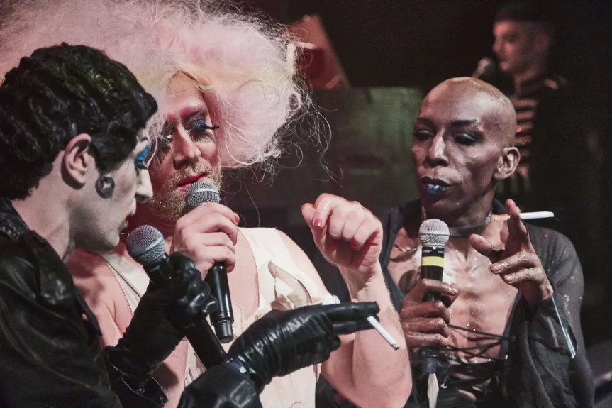 Corrine, Brenda Mour et Patachouille assurent le spectacle façon cabaret, on se croirait chez Madame Arthur ( Ah oui, deux des protagonistes ont sévi sur la scène de ce cabaret montmartrois!).