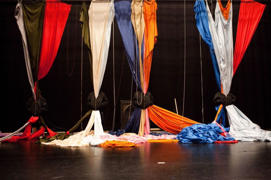 Si le rythme du passage des tissus et leur enroulement lassent un peu, la maitrise des danseurs, leur énergie à faire en sorte que tout arrive à point nommé est à saluer…