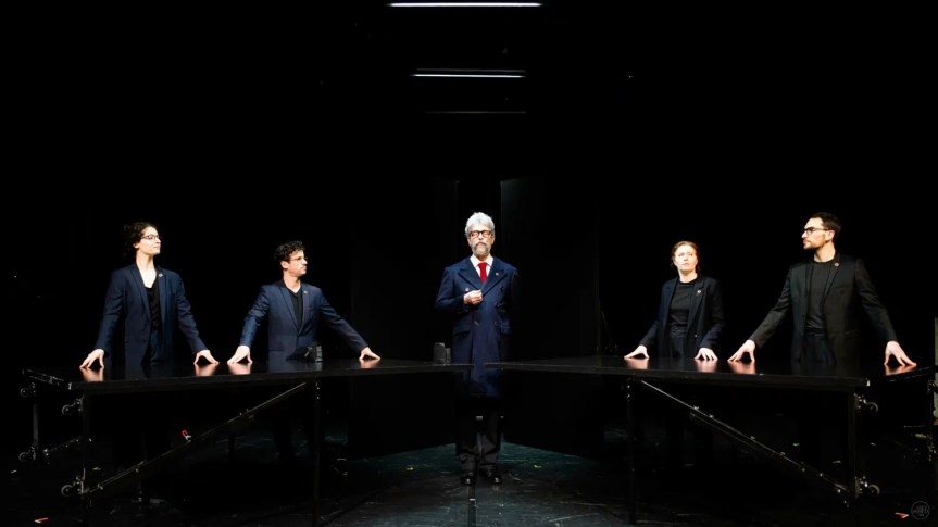 « Made in France », est la nouvelle pièce féroce de Samuel Valensi et Pau-Eloi Forget de la troupe ‘La Poursuite du Bleu’ après le très réussi ‘Coupures’ (2022) qui mettait déjà en scène le monde politique et ses turpitudes.