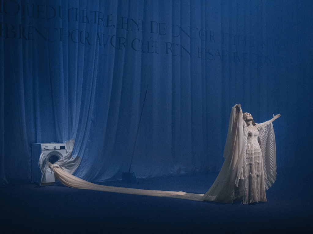 Bérénice, le drame écrit par Jean Racine, devient ici un monologue mettant en scène l’une des grandes figures de la scène contemporaine : Isabelle Huppert, dont la présence concentre toute la tension émotionnelle et symbolique du spectacle.