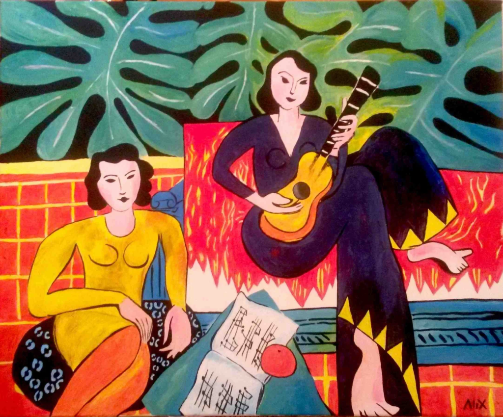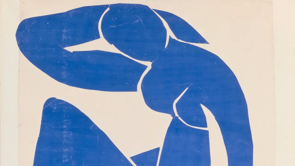 En 1941, Henri Matisse frôle la mort suite à une grave opération d’un cancer de l’abdomen. Pourtant, ce septuagénaire refuse de quitter la France occupée et transforme cette épreuve en catalyseur créatif. Confiné dans sa chambre de l’hôtel Régina à Nice, puis dans sa villa à Vence, Matisse se lance dans une révolution de sa technique plastique. L’invention majeure de cette période reste la technique des gouaches découpées. Dès 1943, il travaille sur Jazz, album où il gouache des feuilles de papier, découpe des formes avec des ciseaux, puis les assemble. Cette méthode devient bien plus qu’un simple outil : elle devient un processus créatif autonome. L’artiste parle lui-même de « dessiner directement dans la couleur ». Cette technique culmine avec des œuvres monumentales : La Tristesse du roi, La Danseuse créole, la série des Nus bleus. Ces compositions ouvrent la voie à l’art abstrait par le dépouillement extrême de la forme. Mais Matisse n’abandonne pas totalement les pinceaux. L’artiste peindra 75 toiles pendant cette période. Il fait aussi des linographies et des études de portraits.